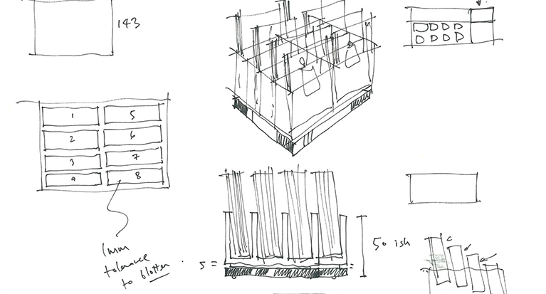Fragrance blotter stand: It became apparent that a once neat pile of blotter cards on the counter top was not sufficient as they easily became messy and often fell off. I designed a stepped acrylic stand to solve this problem.