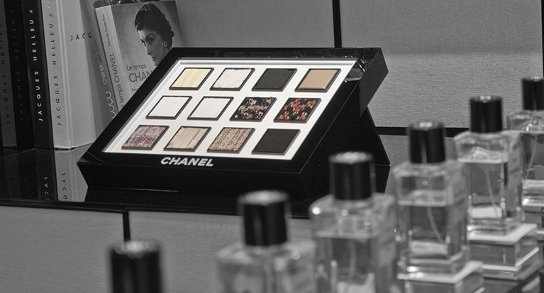 At CHANEL's UK flagship fragrance and beauty counter in Selfridges London, Clever and innovative methods are required to display and promote the latest campaigns and assist the customer in their choices.